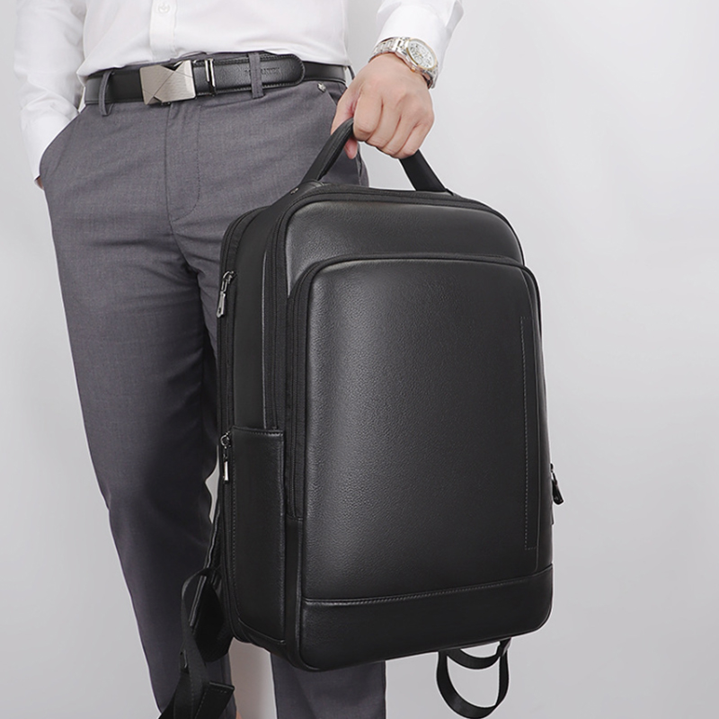 手工真皮双肩包男士头层牛皮商务电脑包黑色出差旅行背包大容量潮