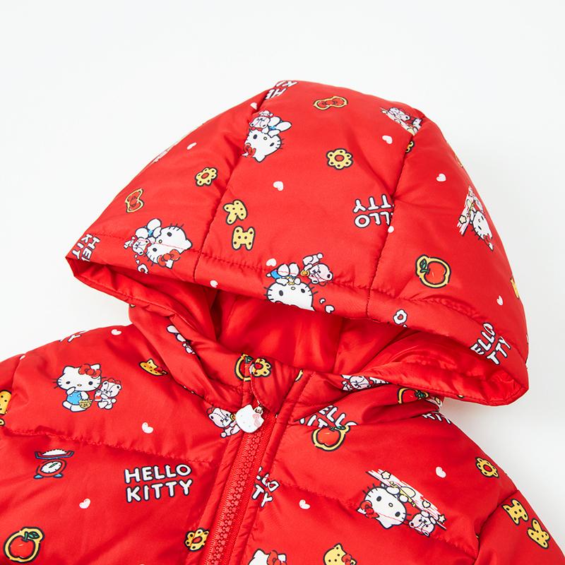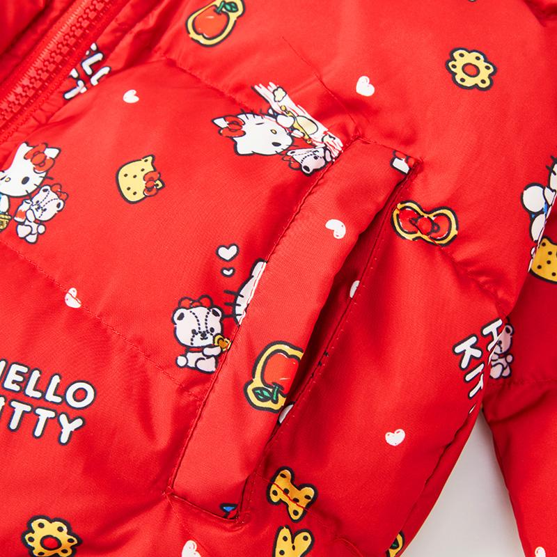 Hello Kitty冬童装女童白鸭绒短款厚连帽羽绒服羽绒外套