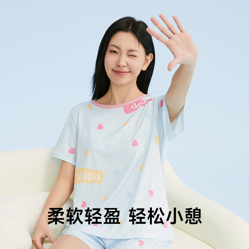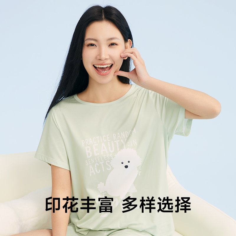 GOSO香蜜闺秀印花柔软睡衣女2025新款女士家居服短袖短裤两件套