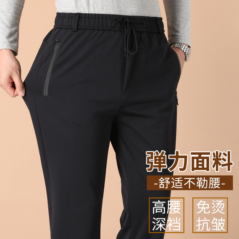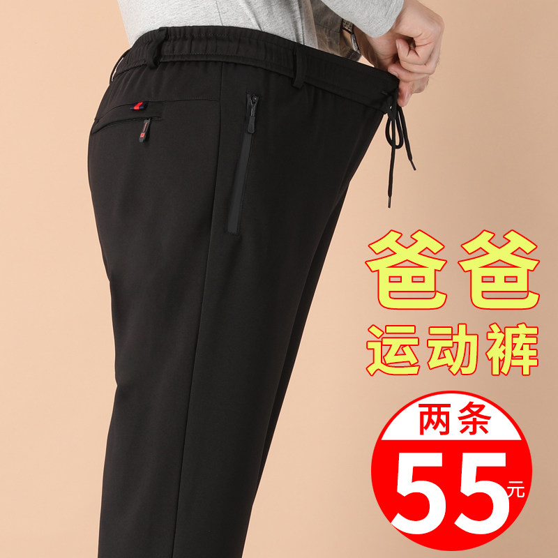 春秋款爸爸裤子松紧腰休闲裤秋季中老年人男士运动裤中年男裤长裤
