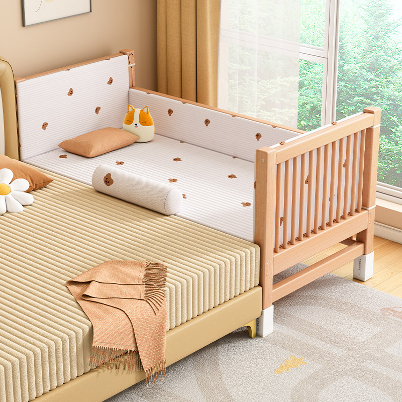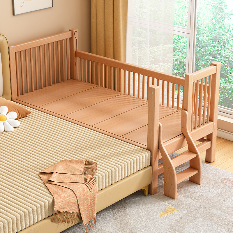 榉木儿童拼接床加宽大床可升降