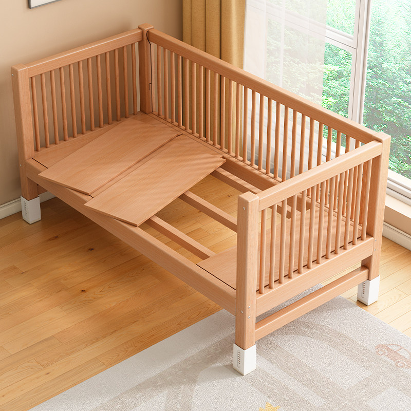 榉木儿童拼接床加宽大床可升降实木床边床大人可睡宝宝小床婴儿床