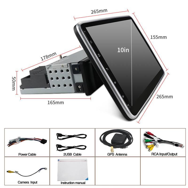 跨境车载安卓播放器大屏10.1寸摇头机导航仪一体主机旋转屏通用机
