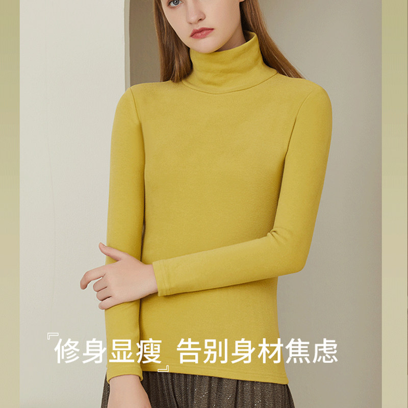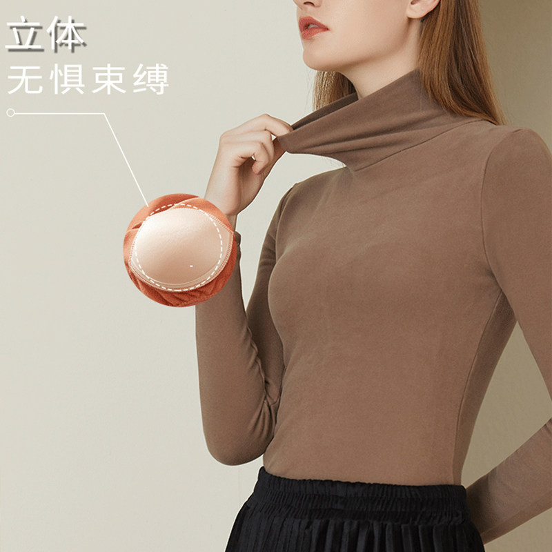 高领保暖内衣女冬季加绒加厚带胸垫长袖T恤内搭秋衣免文胸打底衫