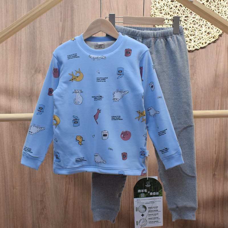 保暖内衣套装羊毛蚕丝男女童秋冬