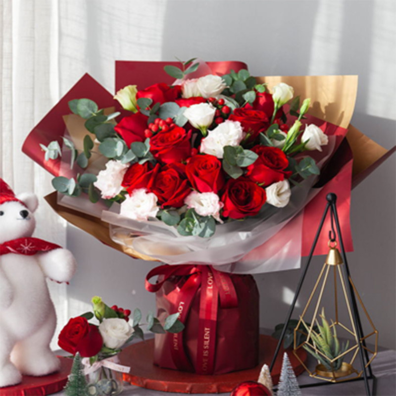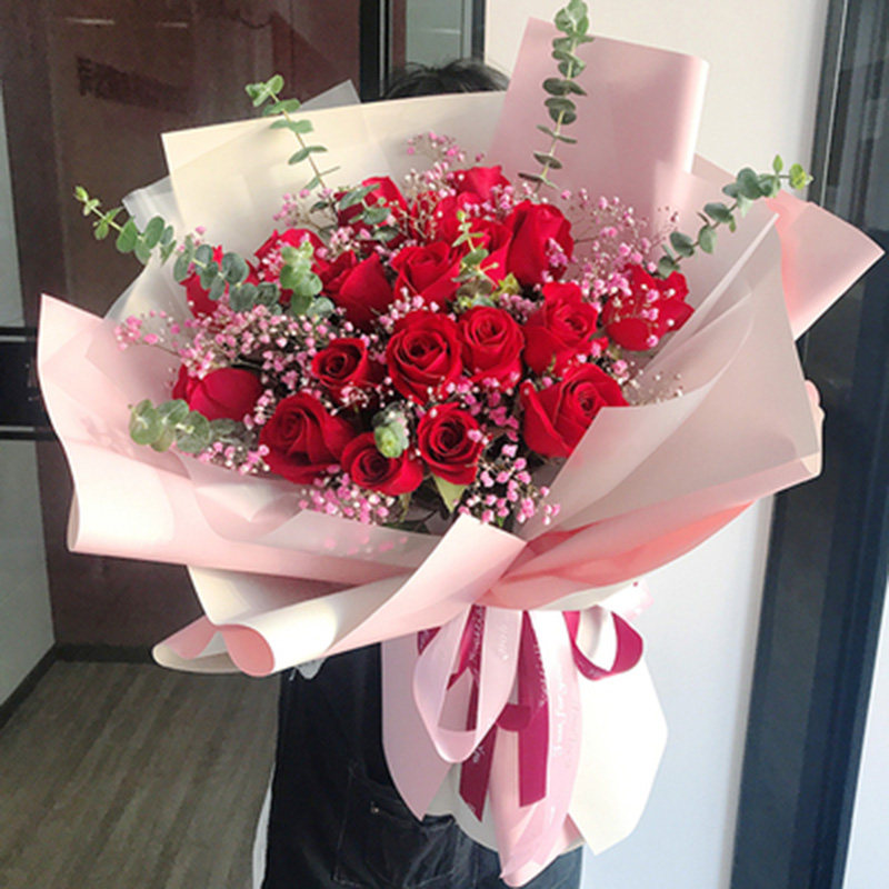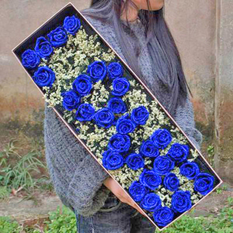 蓝粉香槟红玫瑰花束礼盒鲜花速递同城忻州忻府区原平市花店配送