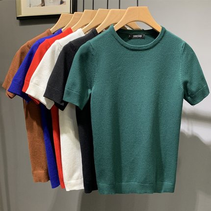 秋冬打底上衣韩版修身男士圆领针织短袖青年休闲短袖T恤打底衫潮