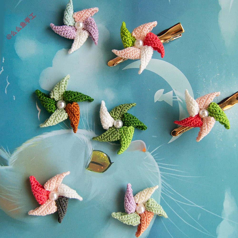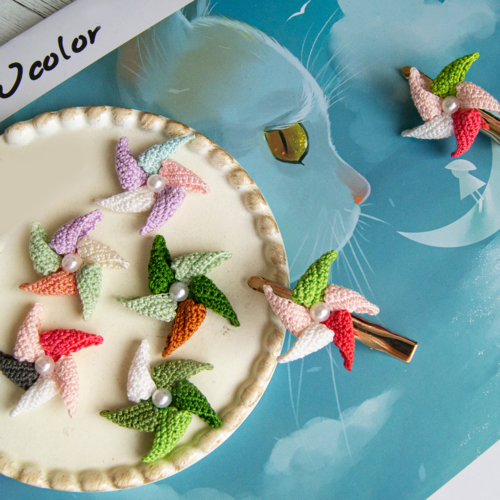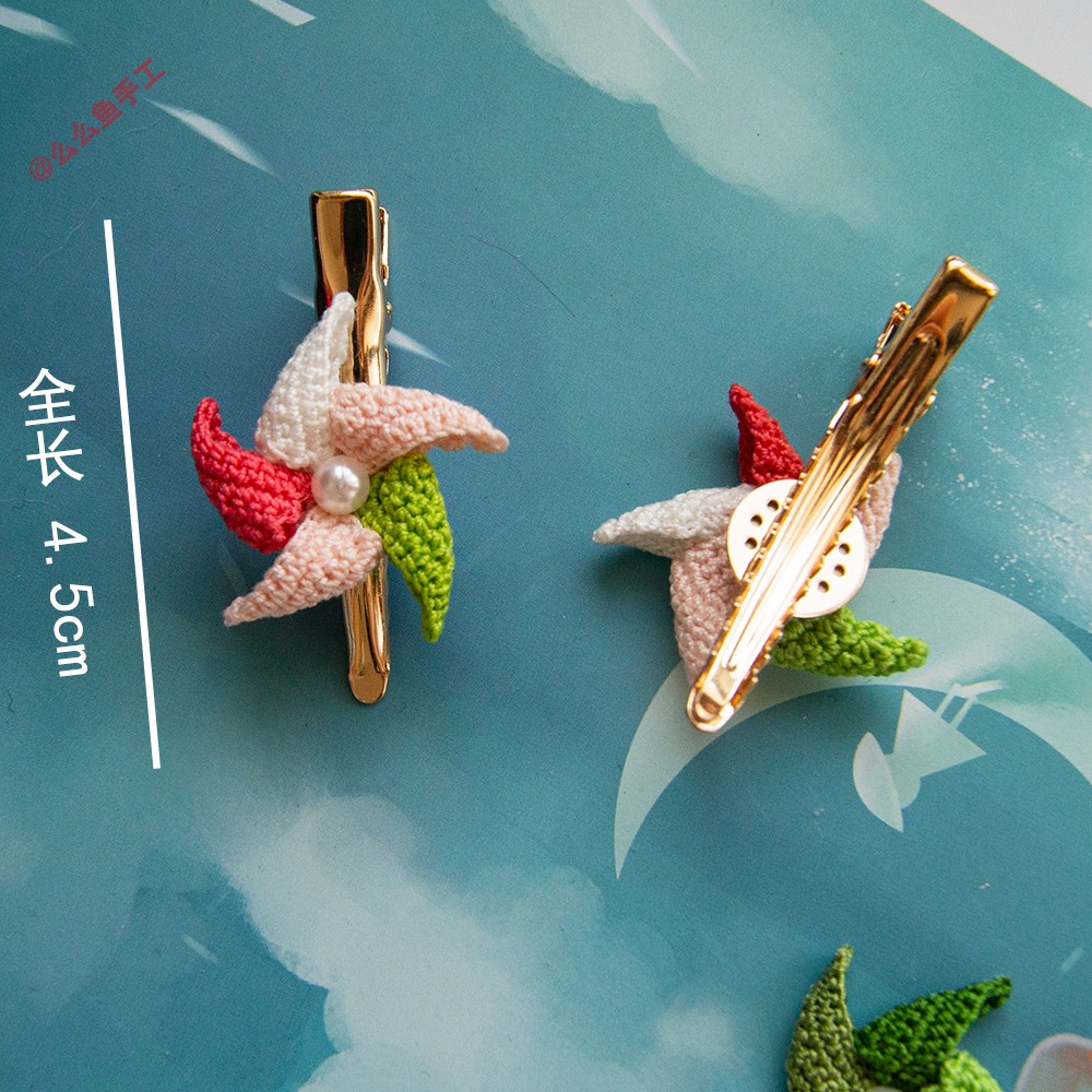 diy趣味小饰品女童发饰手工创意礼物 会旋转的风车发夹微钩材料包