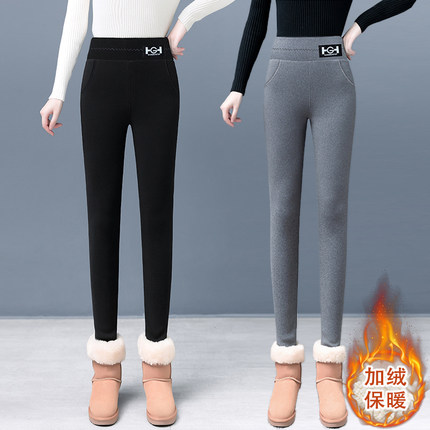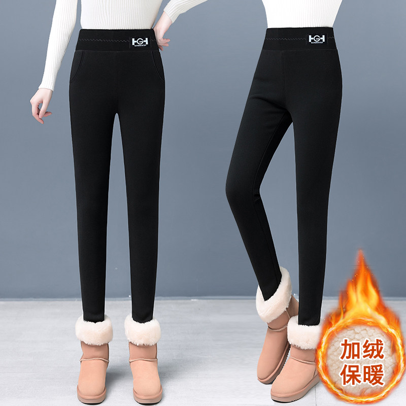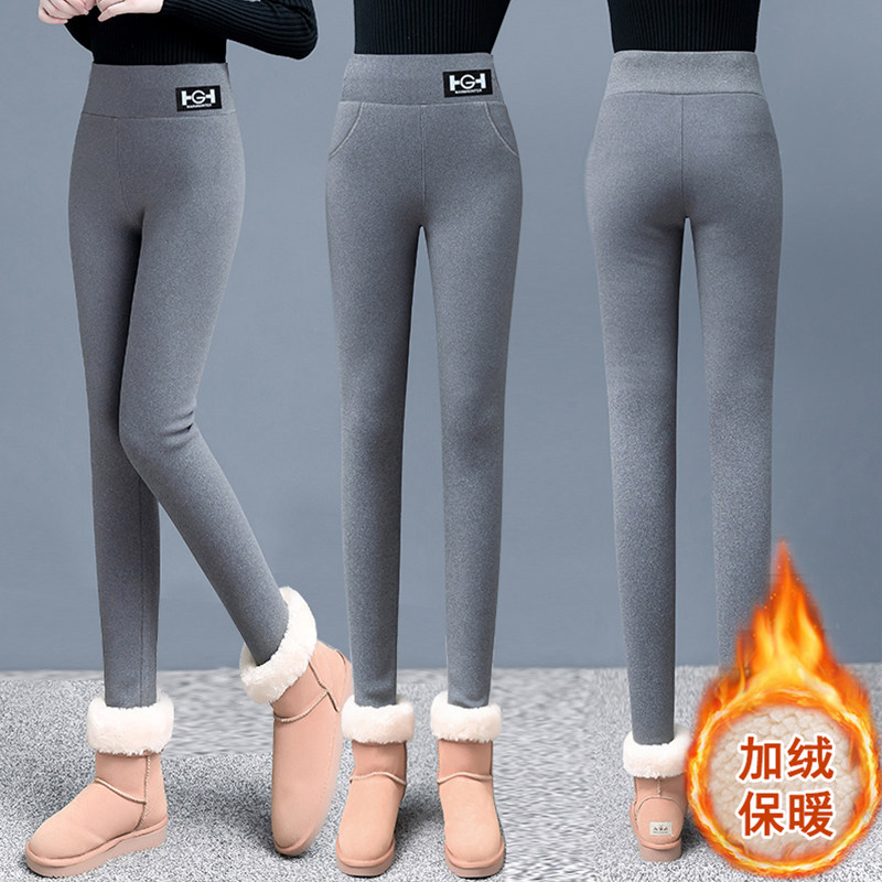 羊羔绒女士打底裤秋冬款加绒加厚一体裤弹力高腰修身保暖外穿棉裤