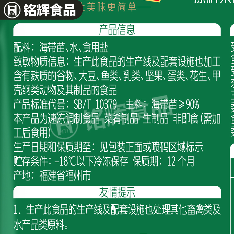安井冻品先生脆嫩海带苗150g新鲜盐渍小海带火锅凉拌菜商用食材