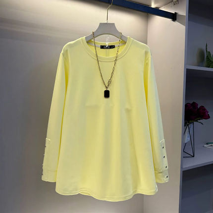 胖妹妹纽扣袖口圆领上衣大码女装韩版春秋款纯色简约百搭休闲卫衣