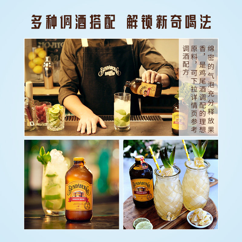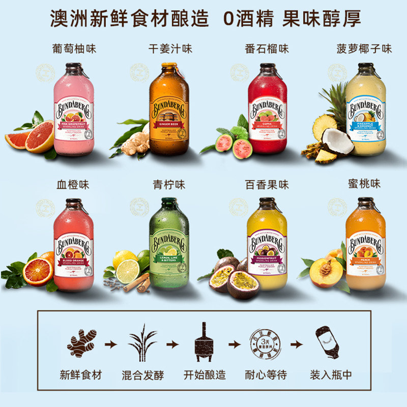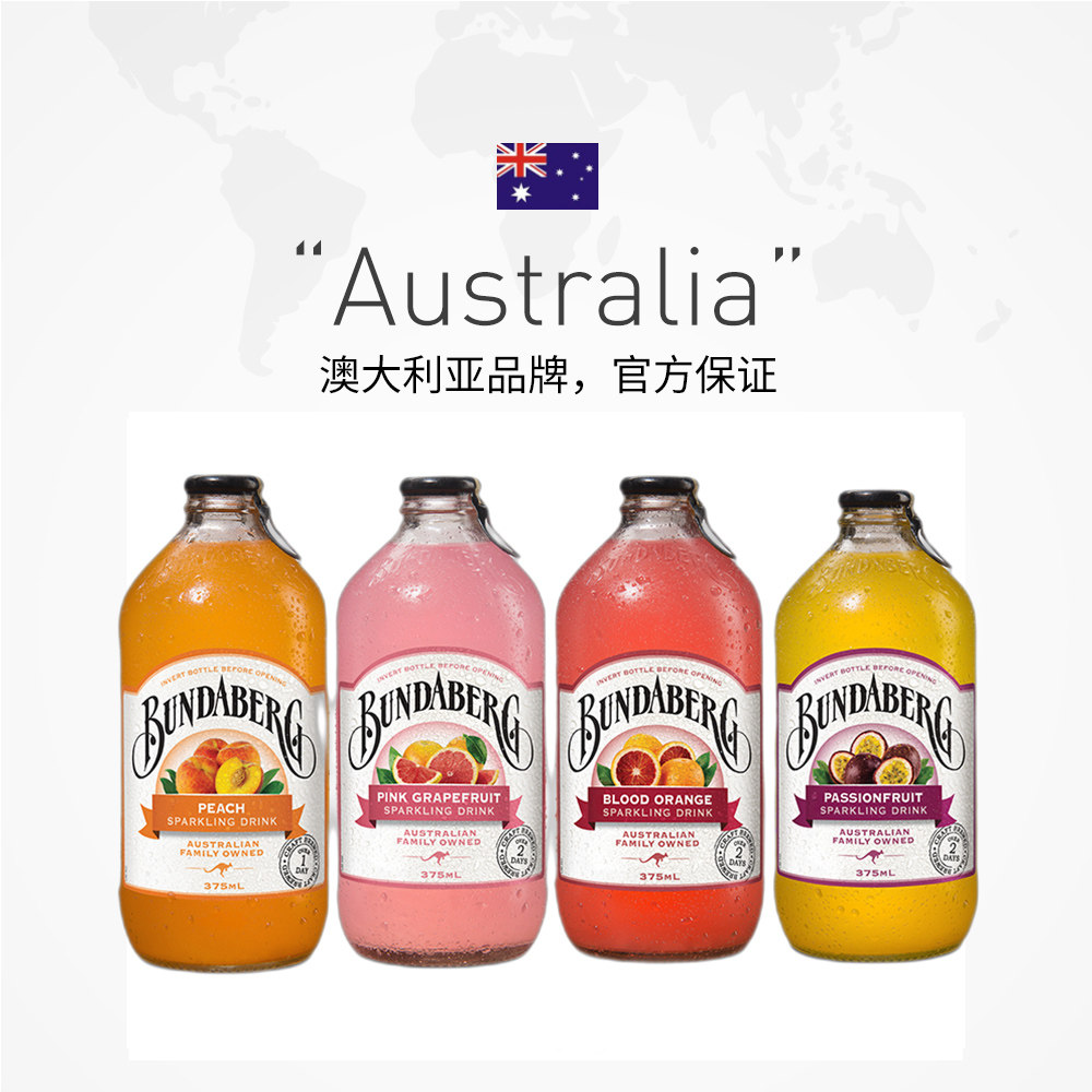 【自营】宾得宝Bundaberg果汁碳酸汽水饮料进口气泡375ml*4瓶装