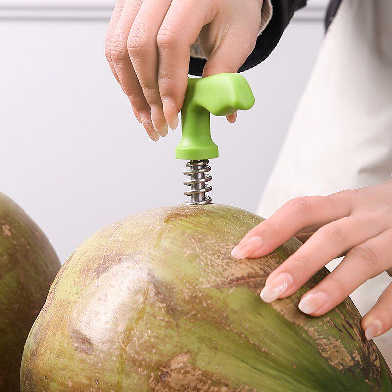 带皮椰子专用开孔器新型弹簧按压式椰青钻眼打孔工具不锈钢开椰刀
