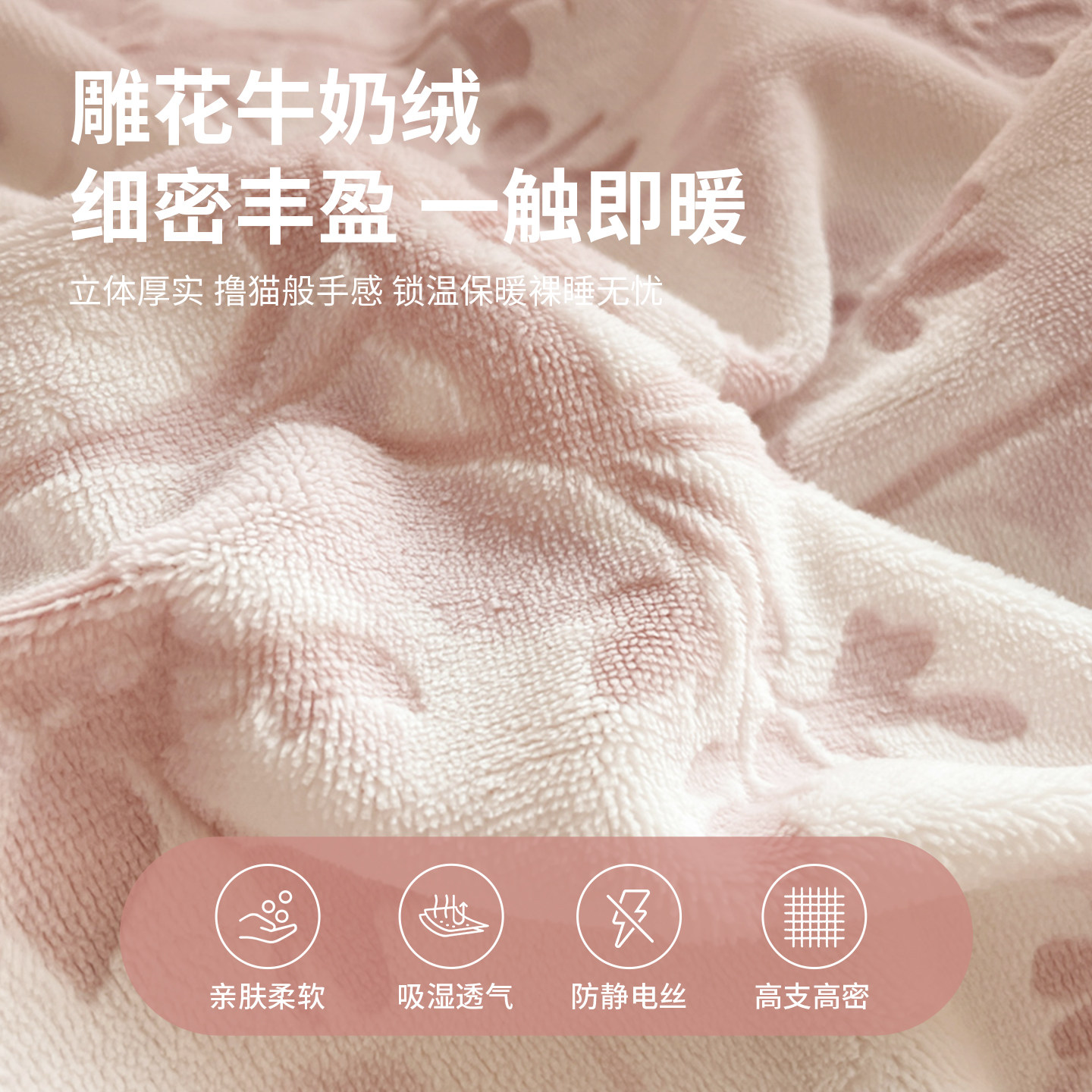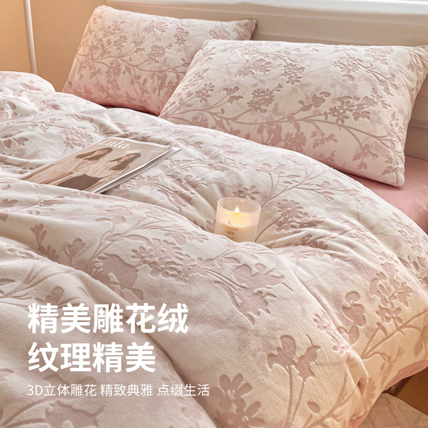 红豆2025款简约雕花牛奶绒四件套
