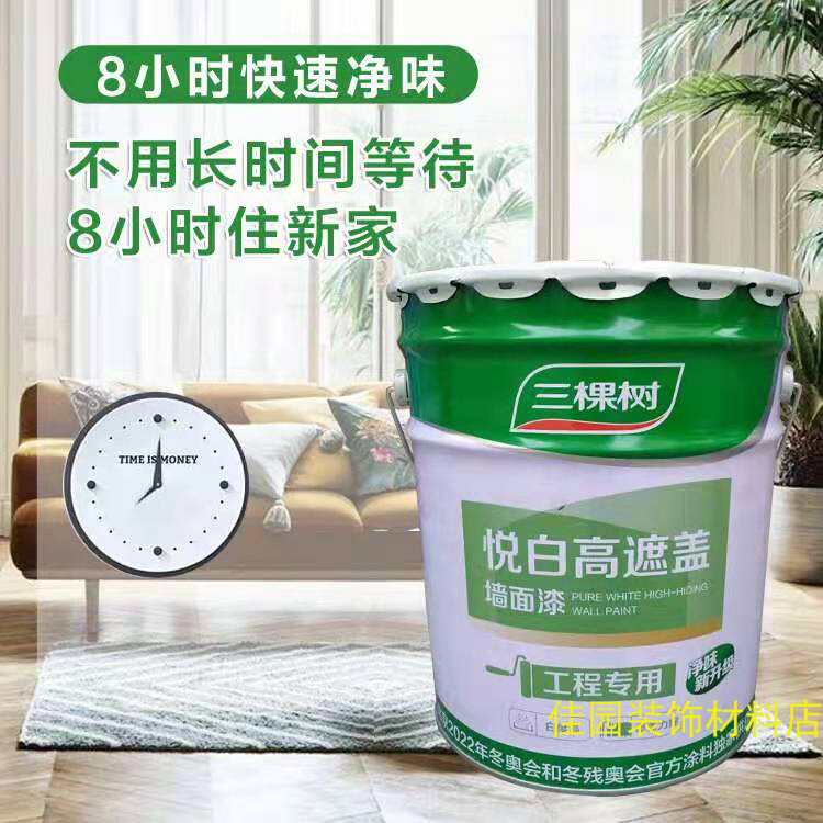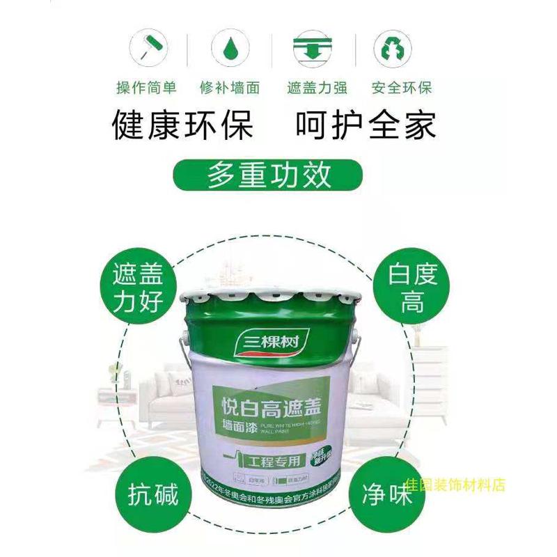 三棵树悦白高遮盖墙面漆内墙乳胶漆室内家用自刷墙漆白色涂料24kg
