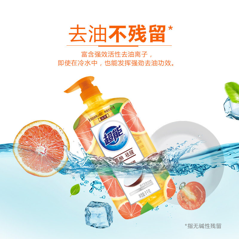 超能西柚袪腥洗洁精1kg家庭用洗碗精去除果蔬残2斤装