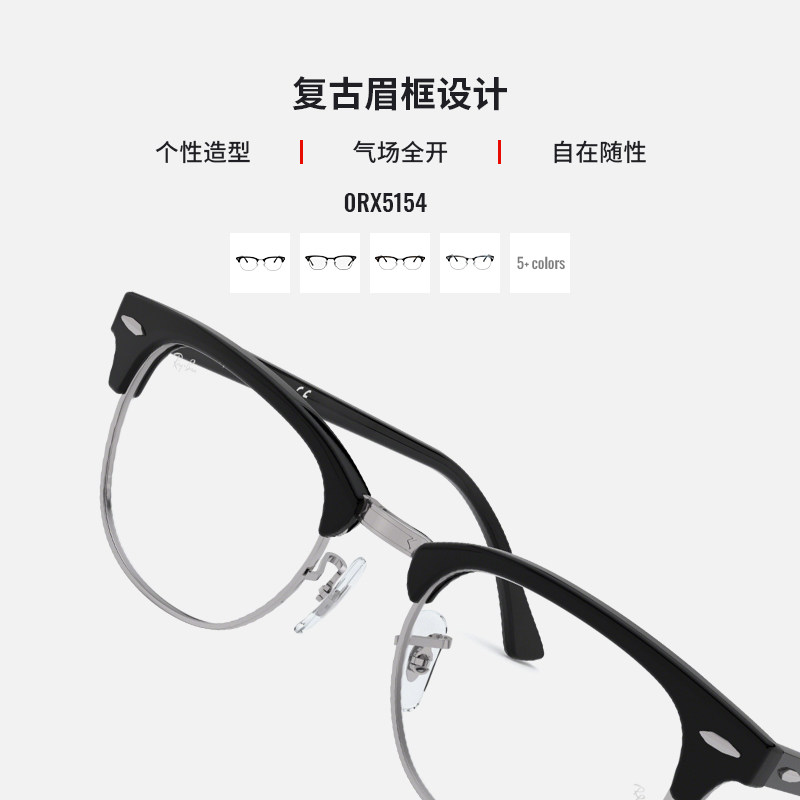 RayBan雷朋光学镜架派对达人款半框式板材男女近视眼镜框0RX5154