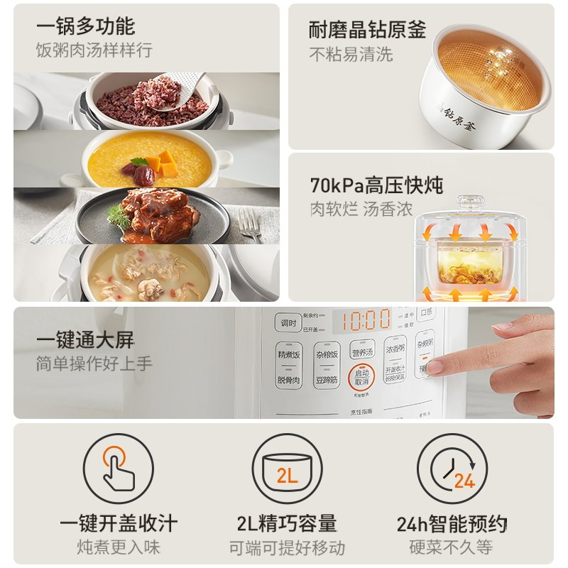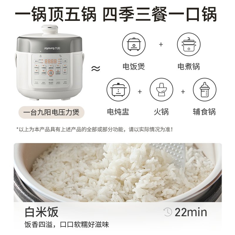 九阳电压力锅家用2L小型迷你电饭煲电饭锅不粘锅内胆压力煲蒸煮饭