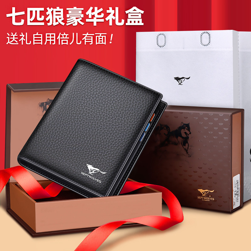 七匹狼男士短款钱包皮夹牛皮