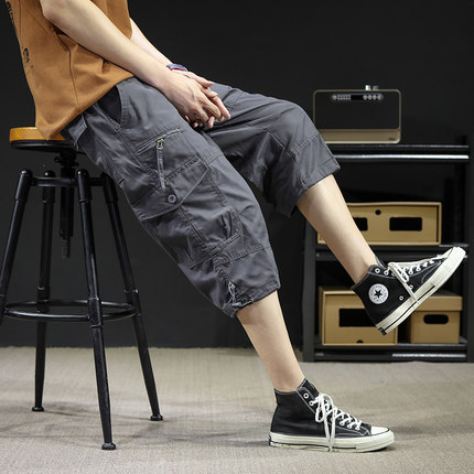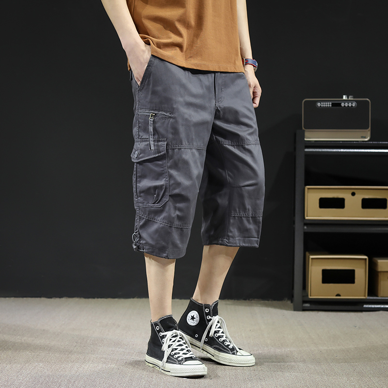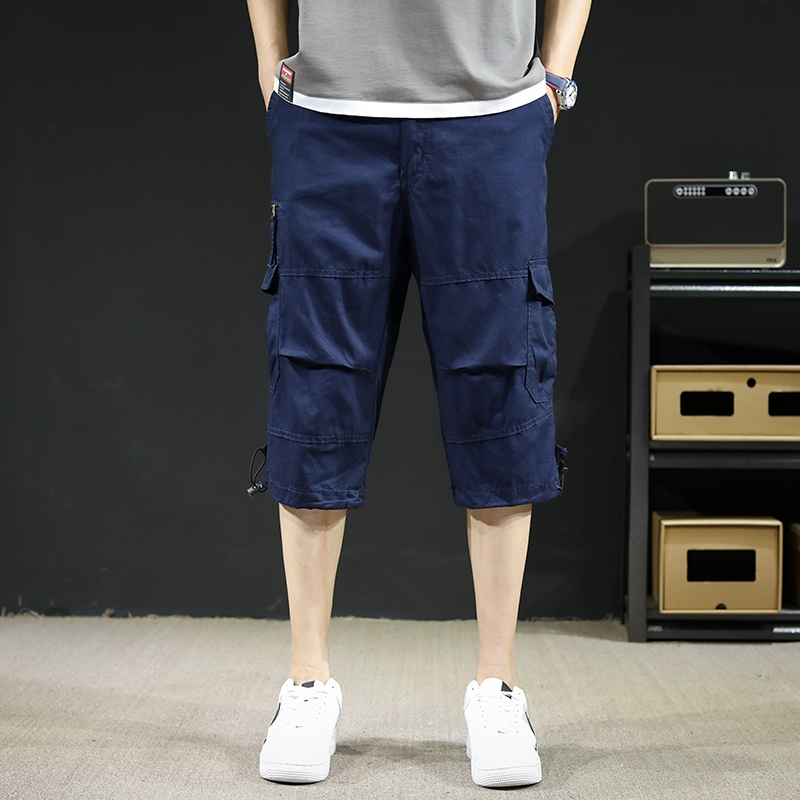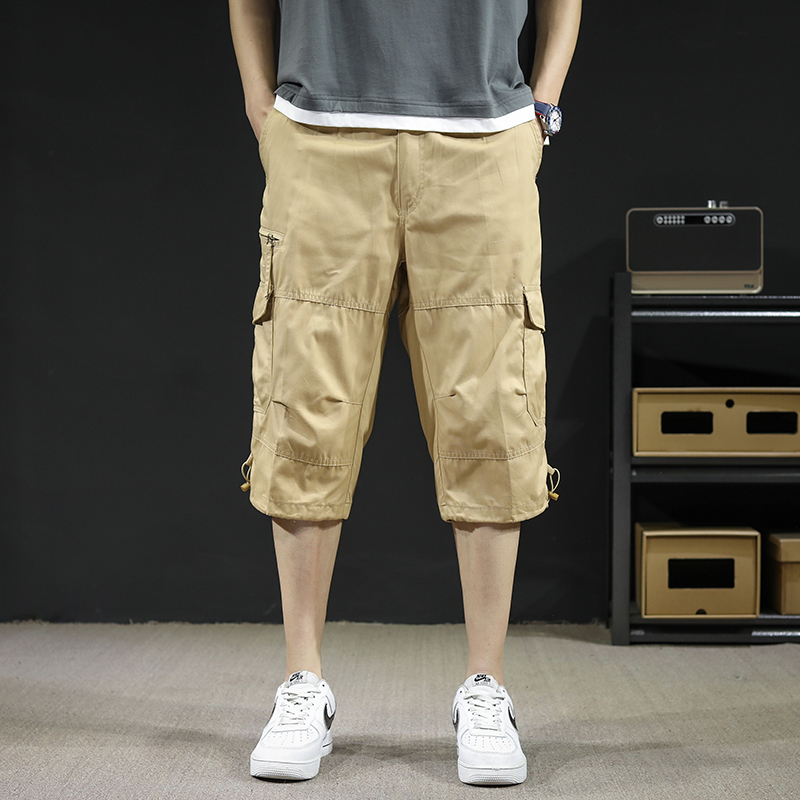 多口袋中裤男加肥加大胖男休闲外贸七分裤肥佬纯棉夏季宽松工装裤