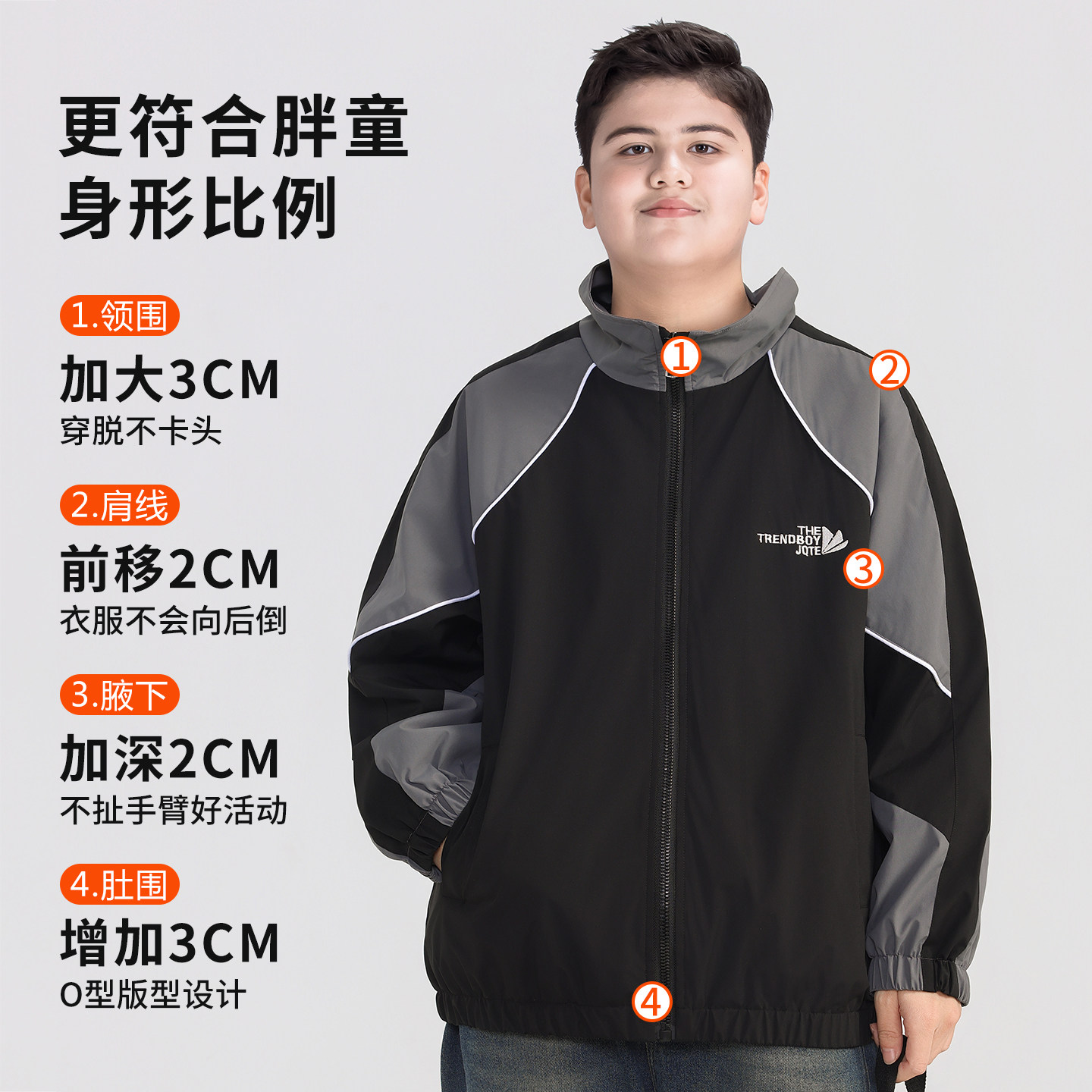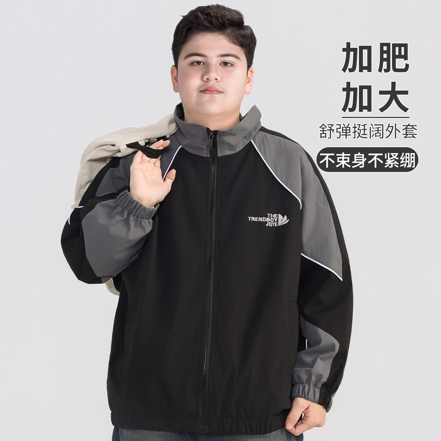 胖童装男童春装外套加肥加大2026春秋新款中大童冲锋衣初中生大码