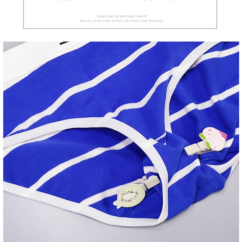 2条装 情侣内裤纯棉性感男平角女三角青年低腰海军条纹情侣套装