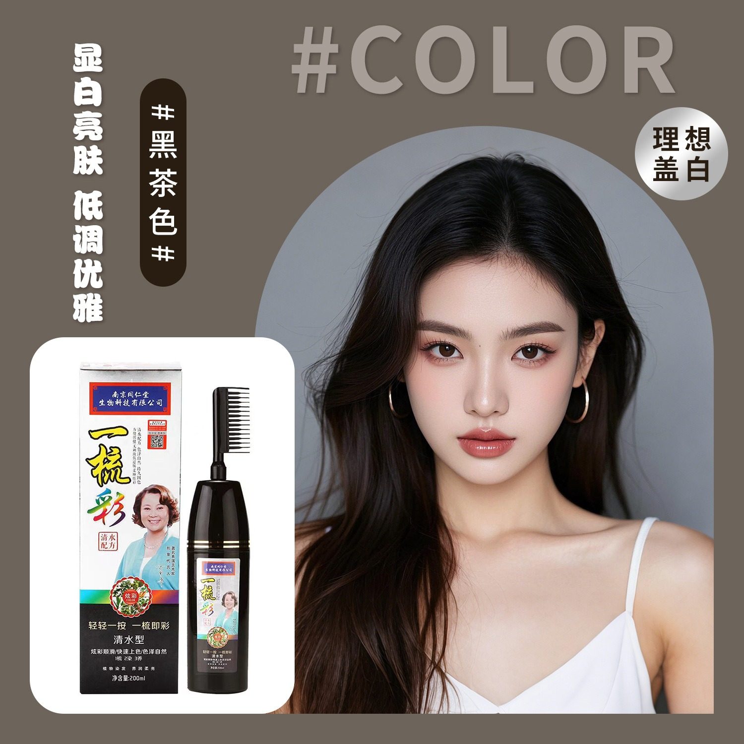 一梳黑染发剂梳子专用纯正品植物天然黑色黑发老人染发膏不沾头皮