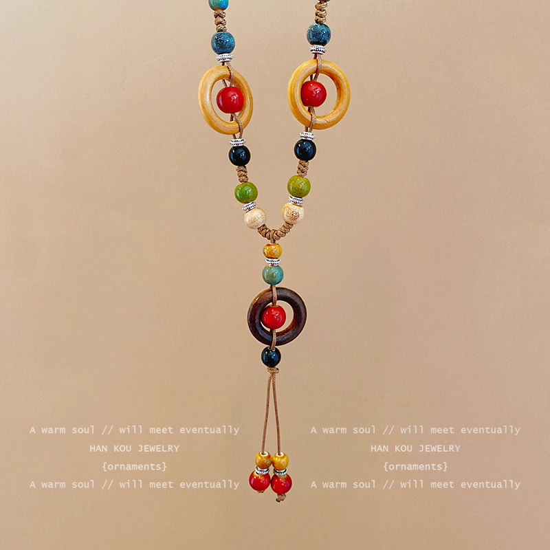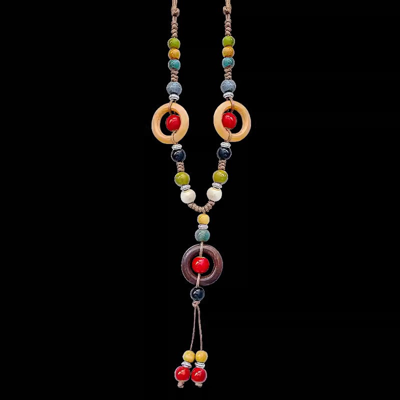 复古波西米亚风陶瓷项链女新中式异域民族风禅意长款毛衣链配饰品