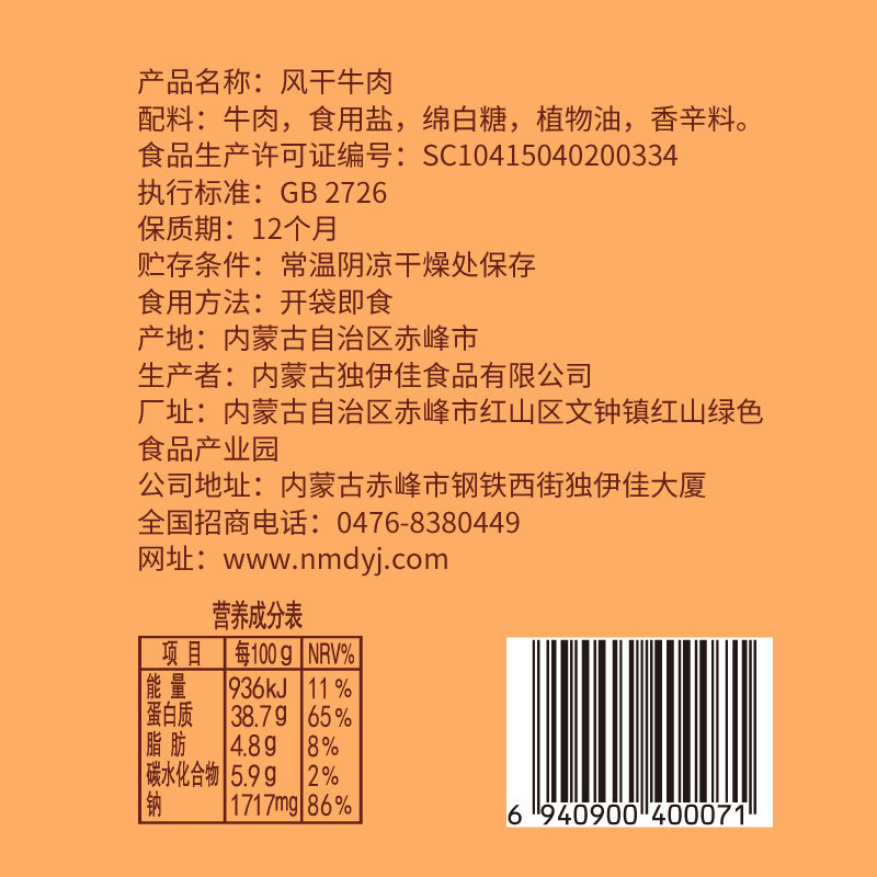 独伊佳大片原切牛肉片500g不柴内蒙古手撕风干牛肉干真空包装原味