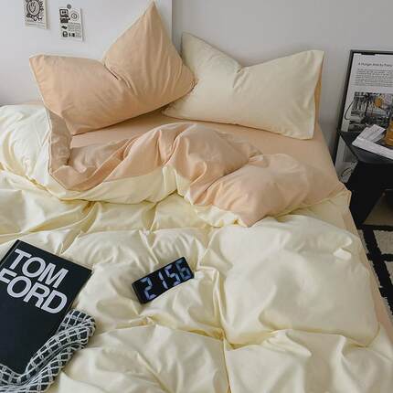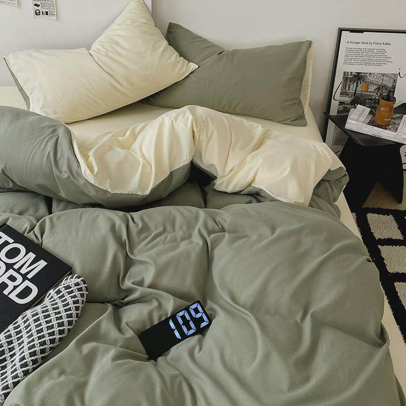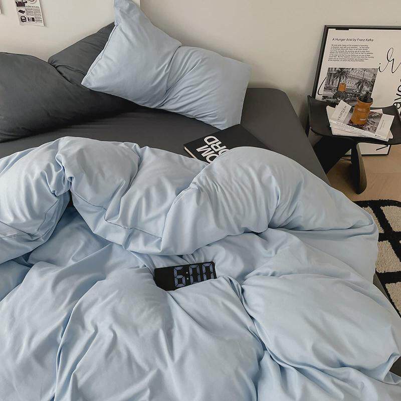 ins纯色水洗棉床上四件套双人床单床笠4单人被套学生宿舍三件套