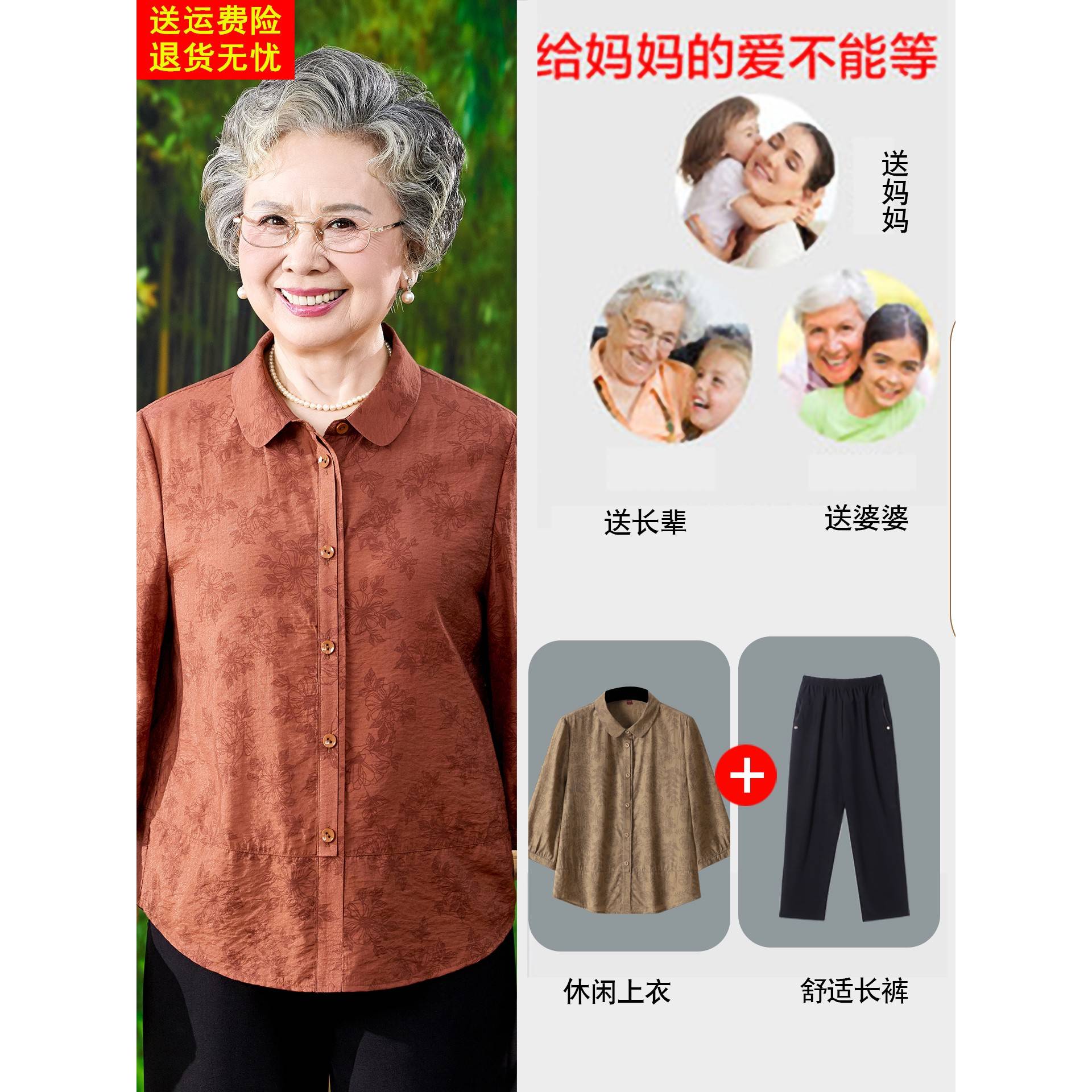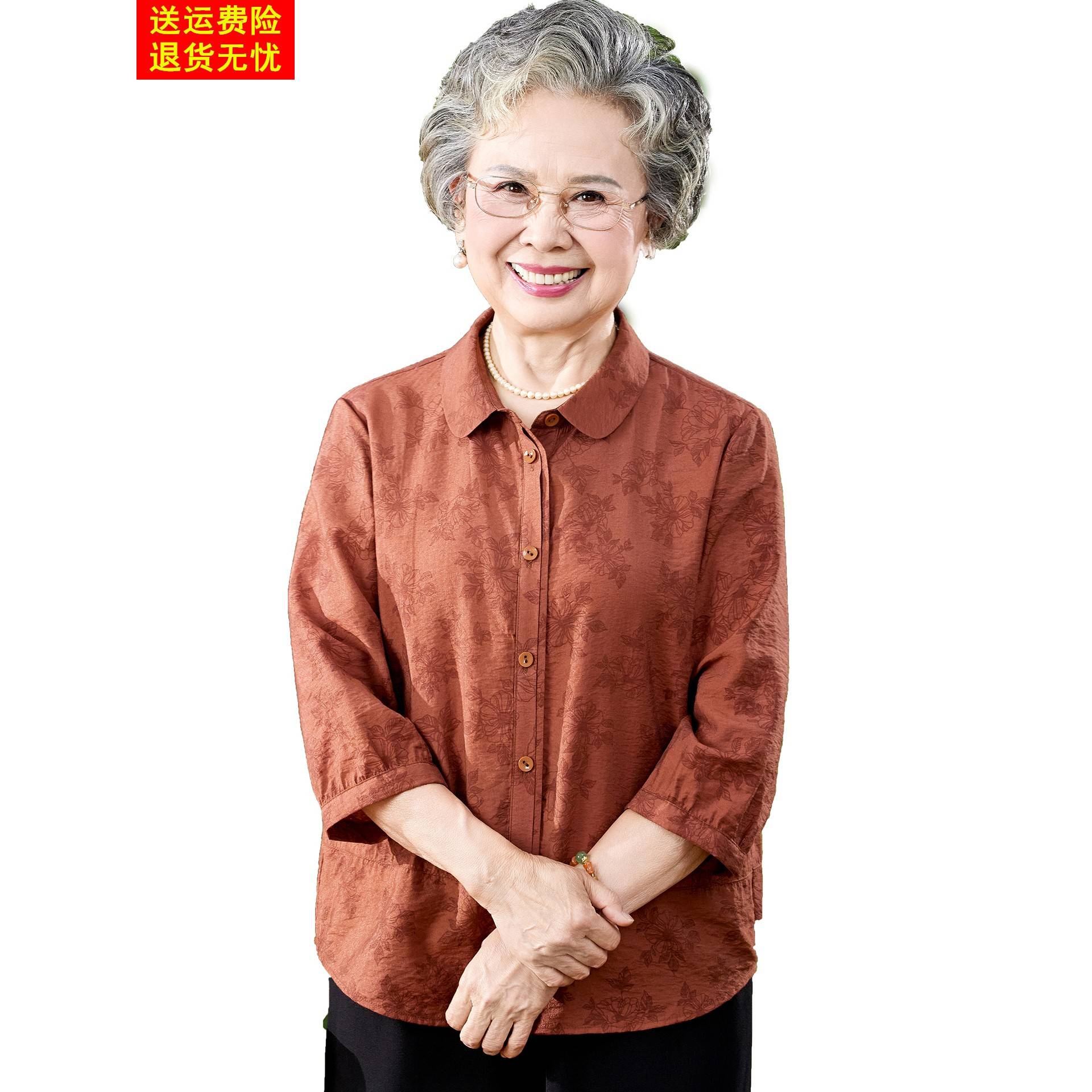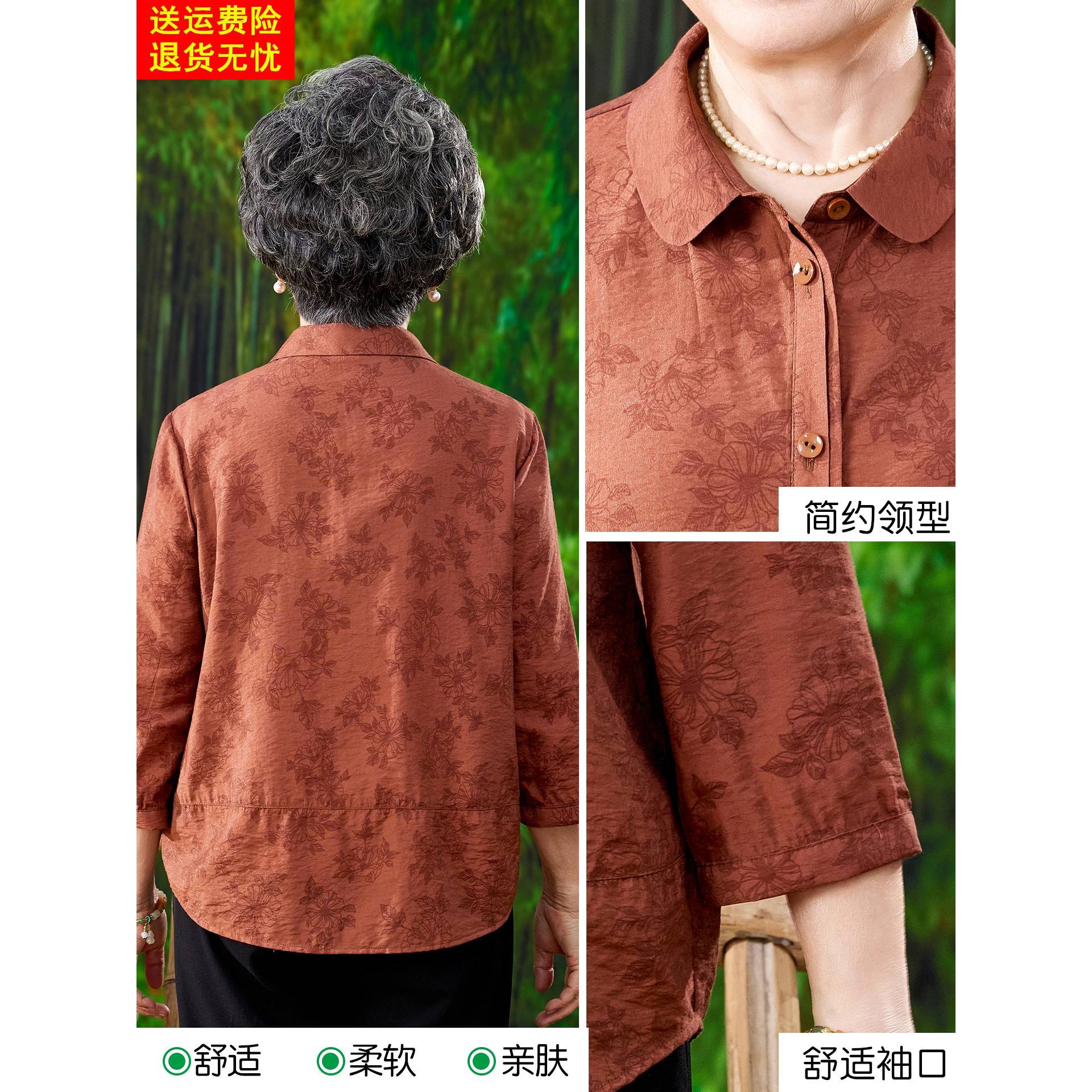 中老年夏装女翻领衬衫妈妈七分袖奶奶开衫2025新款老太太宽松衣服
