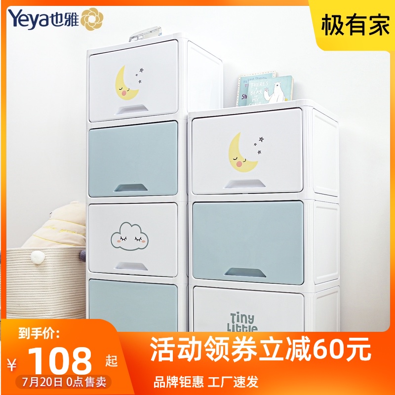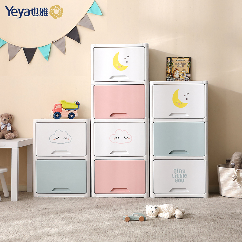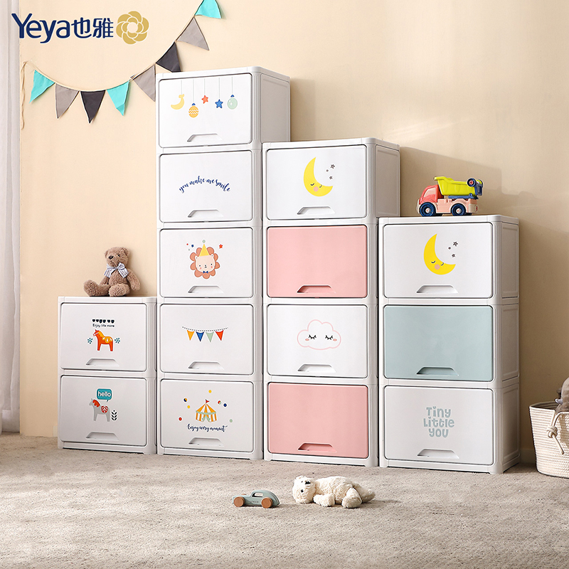 也雅收纳柜翻盖儿童储物柜子塑料加厚多层衣柜宝宝家用零食玩具箱