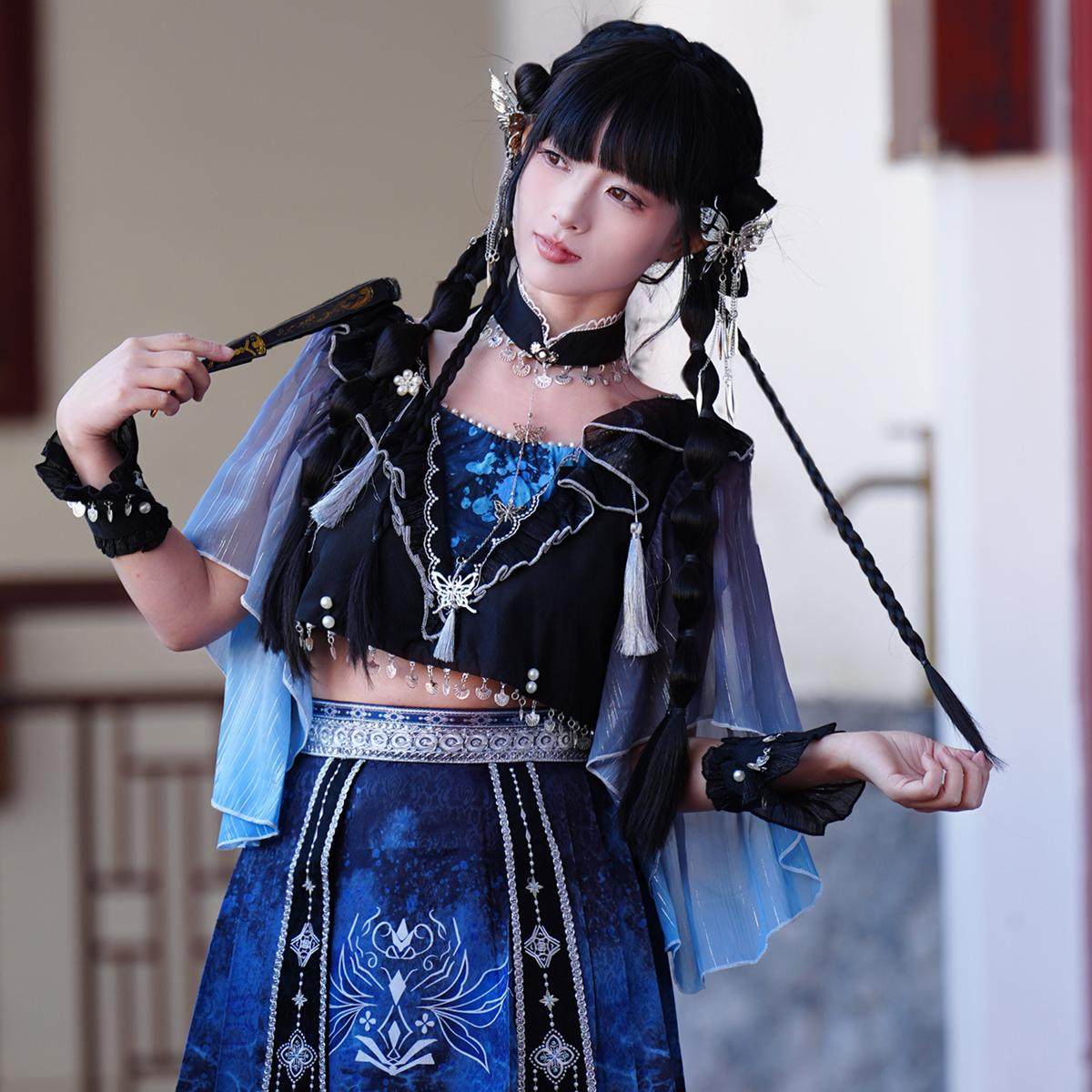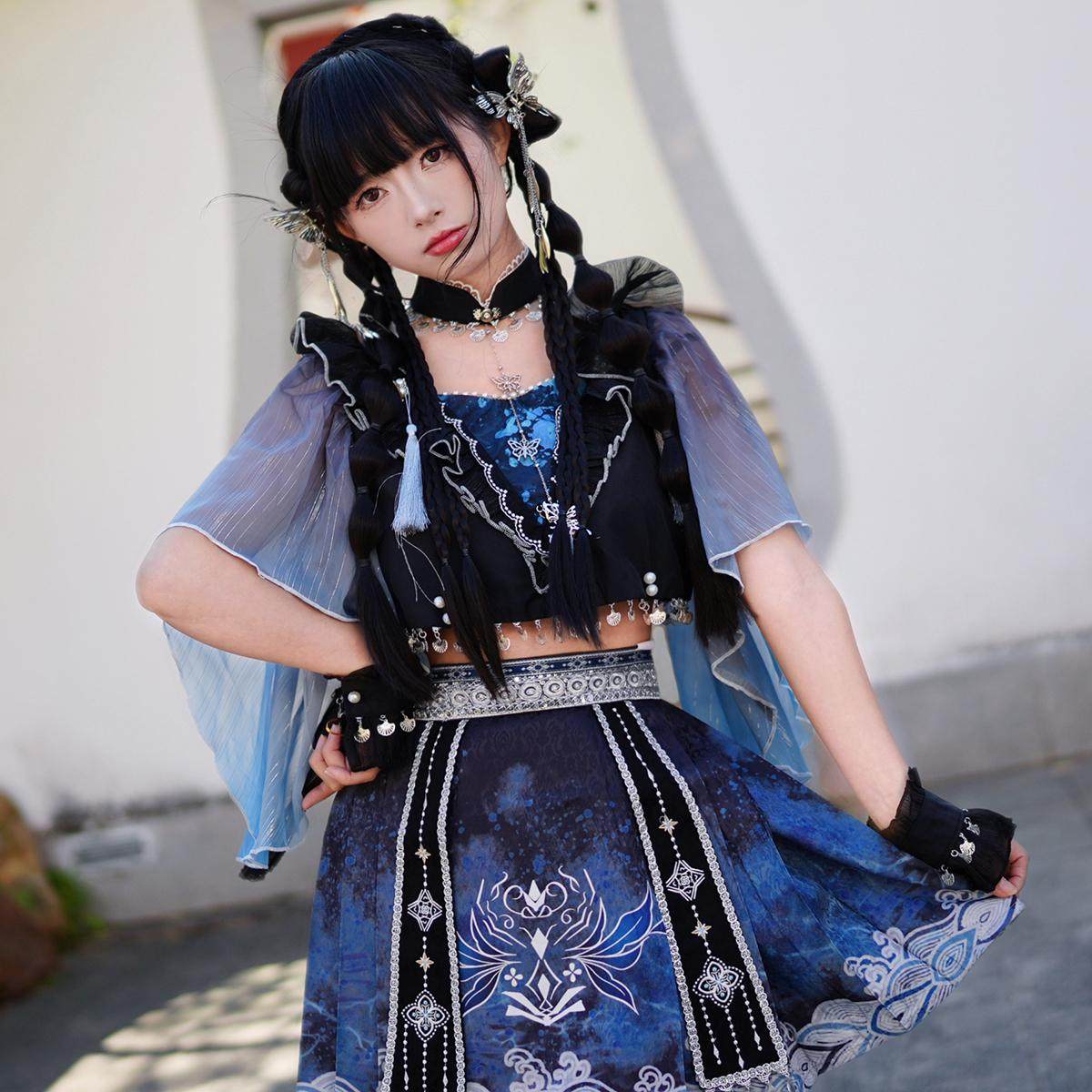 【紫嘉儿同款】汉元素汉服女装中国风上衣手袖短裙套装夏季重工