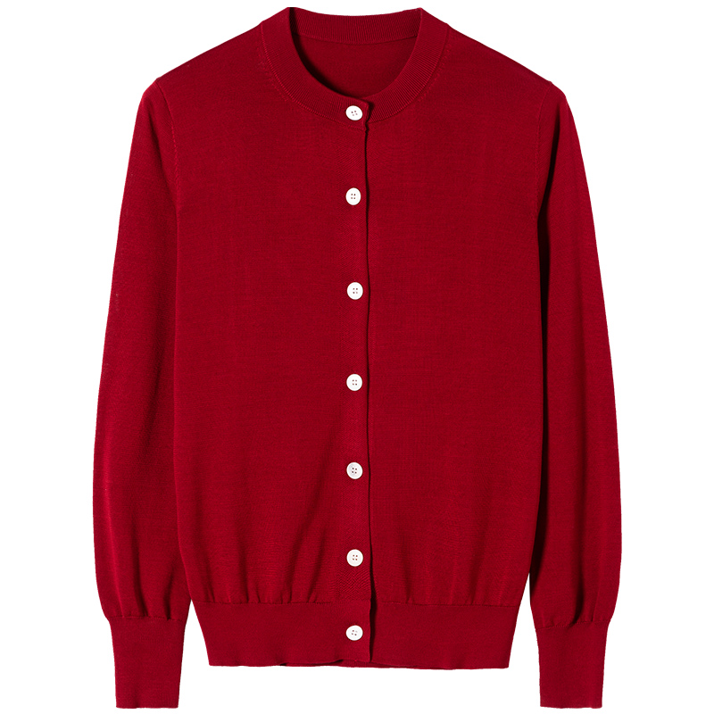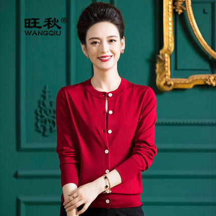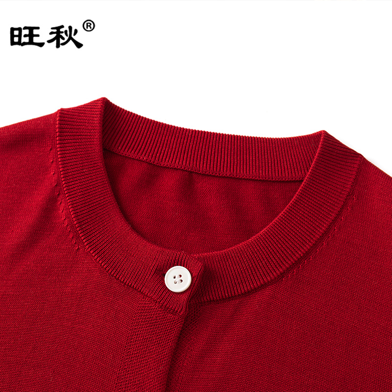 旺秋2025春秋丝羊绒针织开衫圆领桑蚕丝小外套女式薄款空调衫外搭