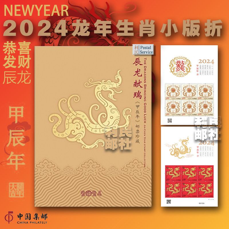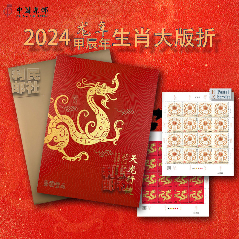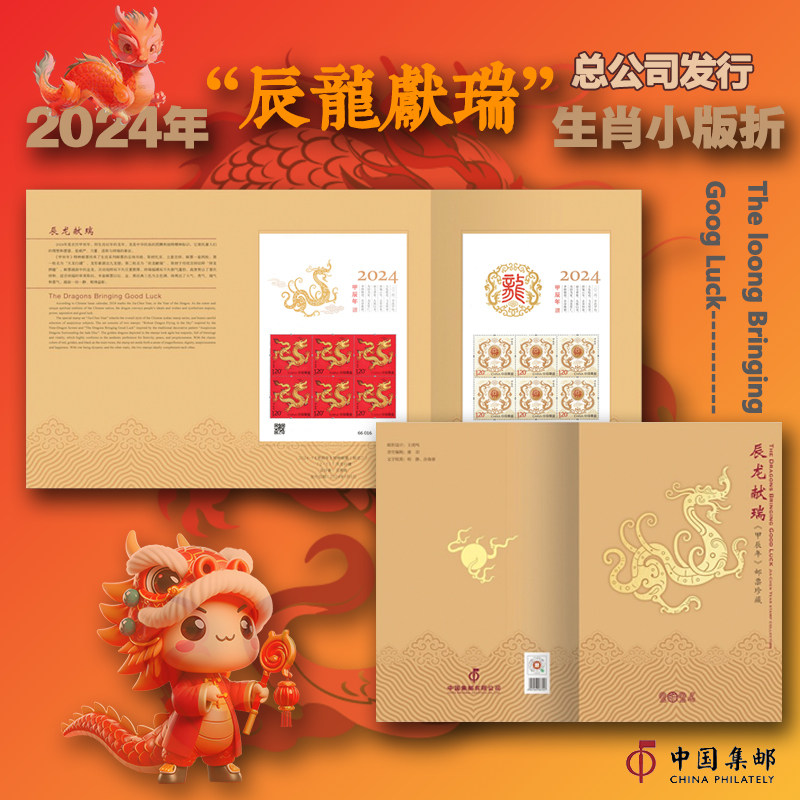 2024-1四轮龙年生肖邮票小版折辰龙祥瑞大版折天龙行健集邮总公司