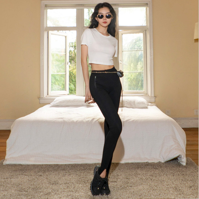月影集 黑色打底裤女外穿高腰修身显瘦贴身压力小脚高弹力踩脚裤