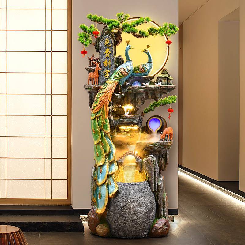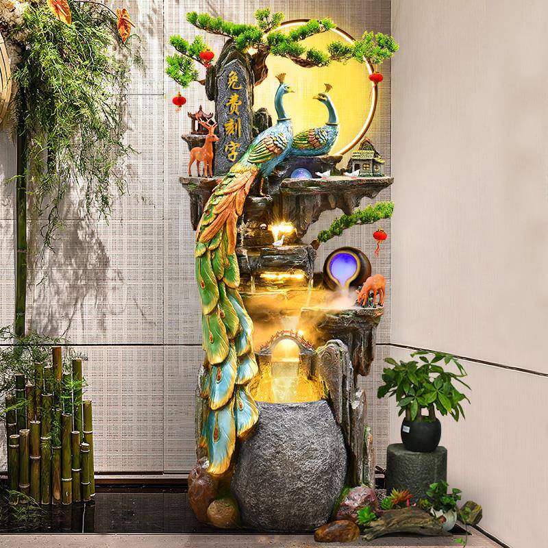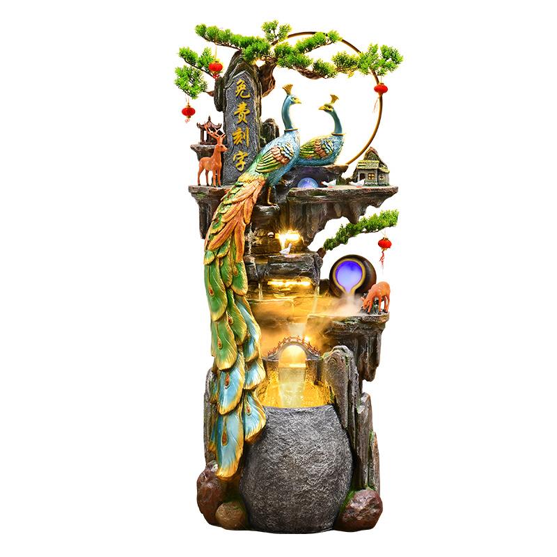 孔雀落地假山流水摆件客厅风水轮开业招财加湿器喷泉高山循环水景