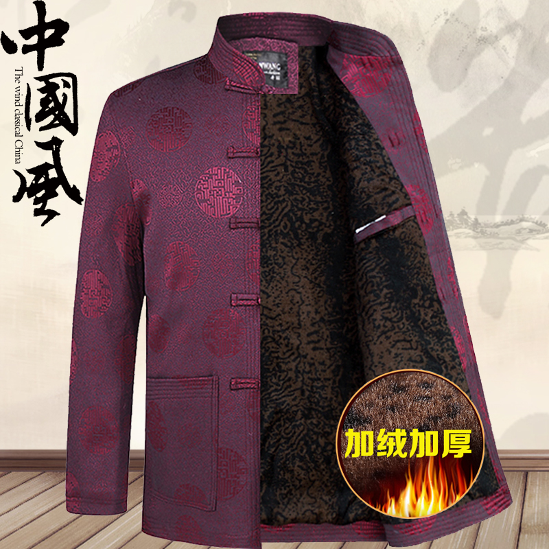 唐装男秋冬季棉衣加厚加绒棉袄中老年人男装爸爸棉服外套爷爷冬装