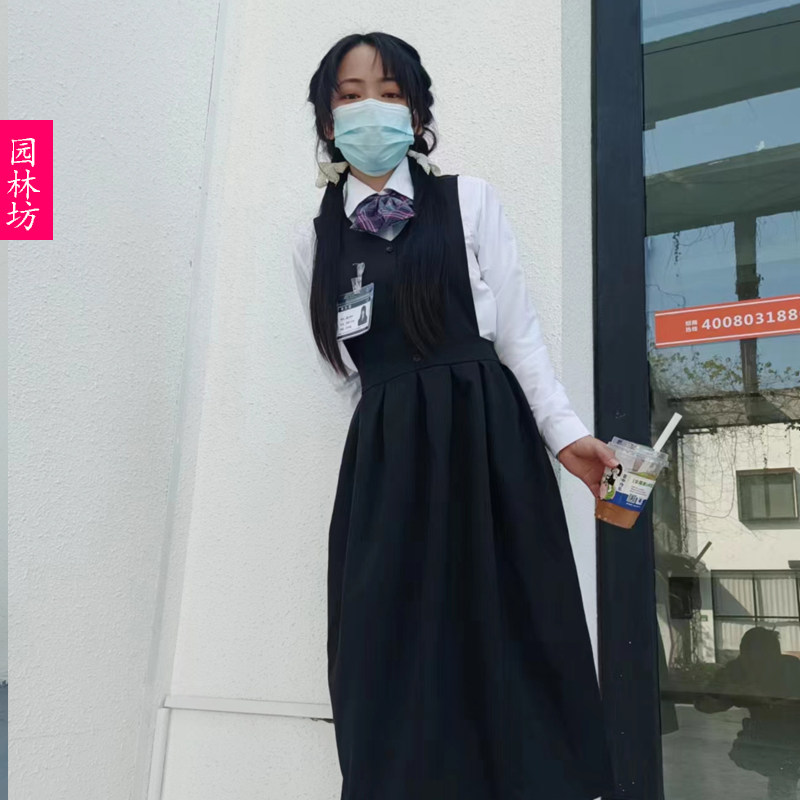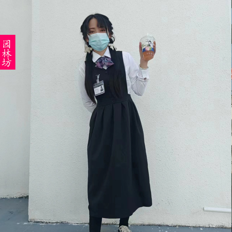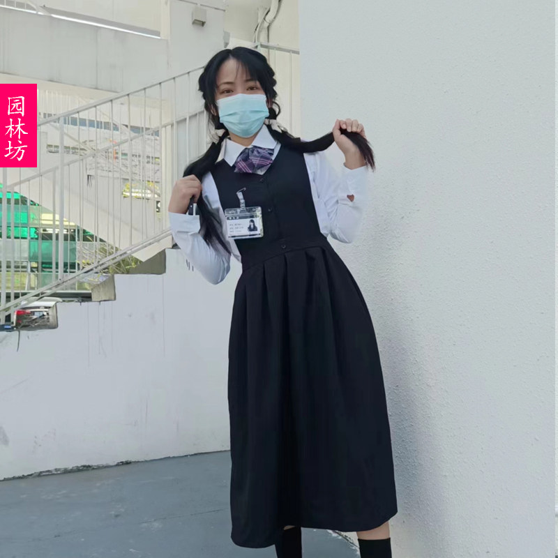 日系jk制服背带连衣裙女文艺中长款春秋季学院风小个子a字裙套装