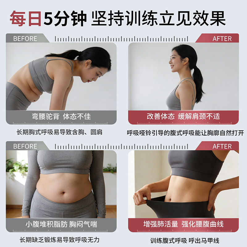 腹式呼吸哑铃训练器肺活量神器锻炼核心腹肌马甲线盆底肌男女通用