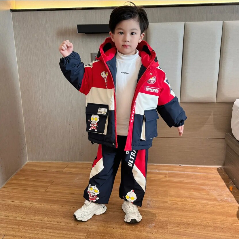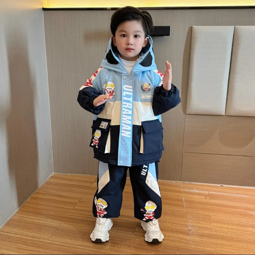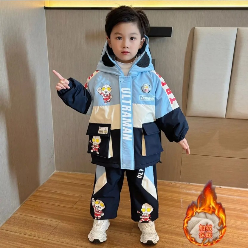 男童冬装加绒套装2025新款奥特曼加厚衣服儿童秋冬季男孩棉服外套