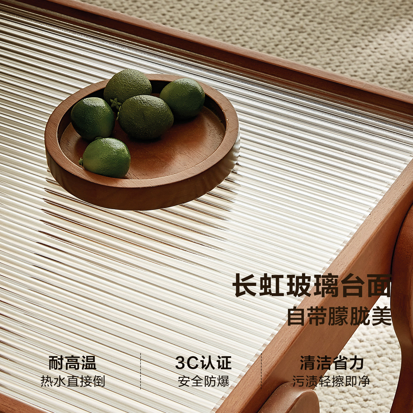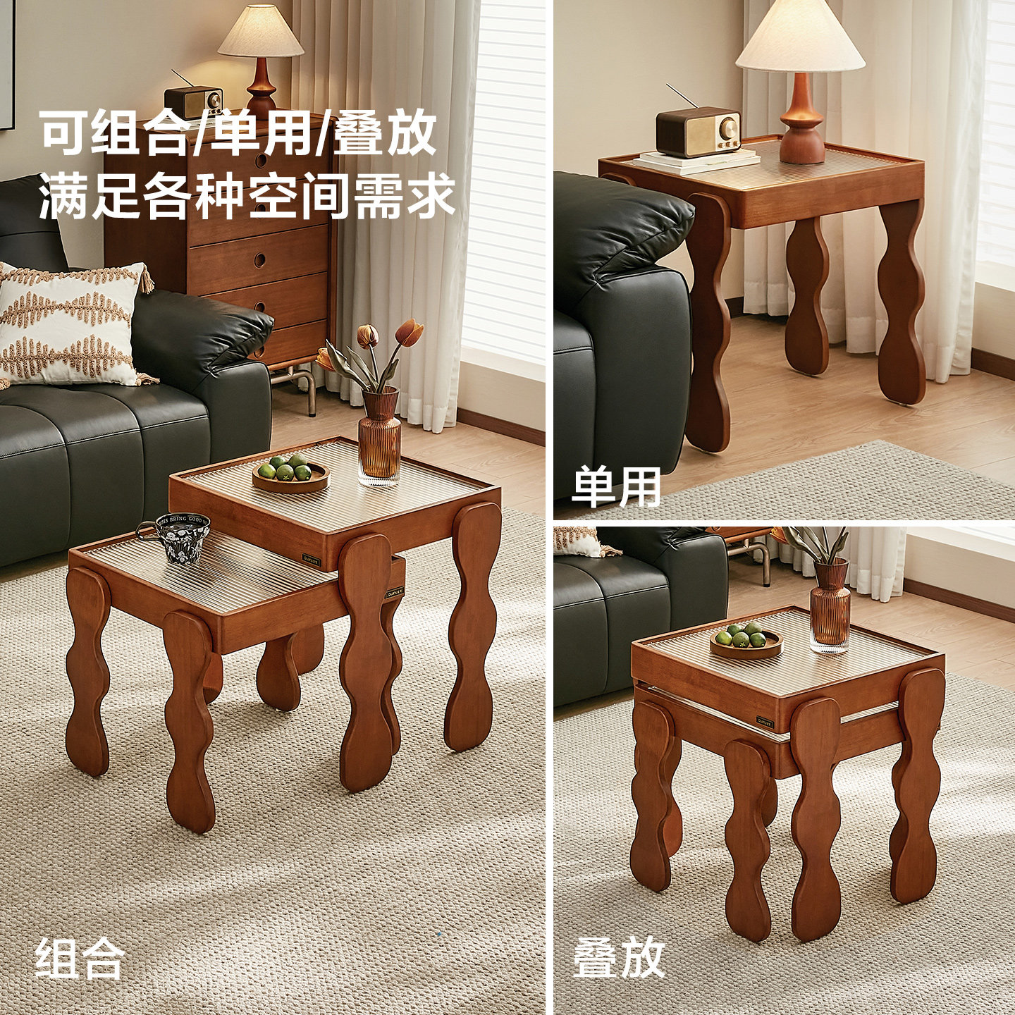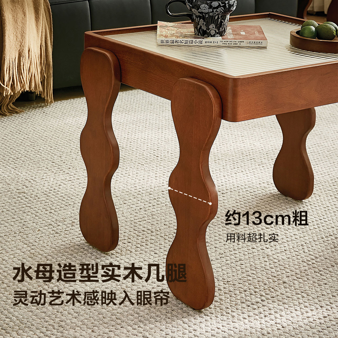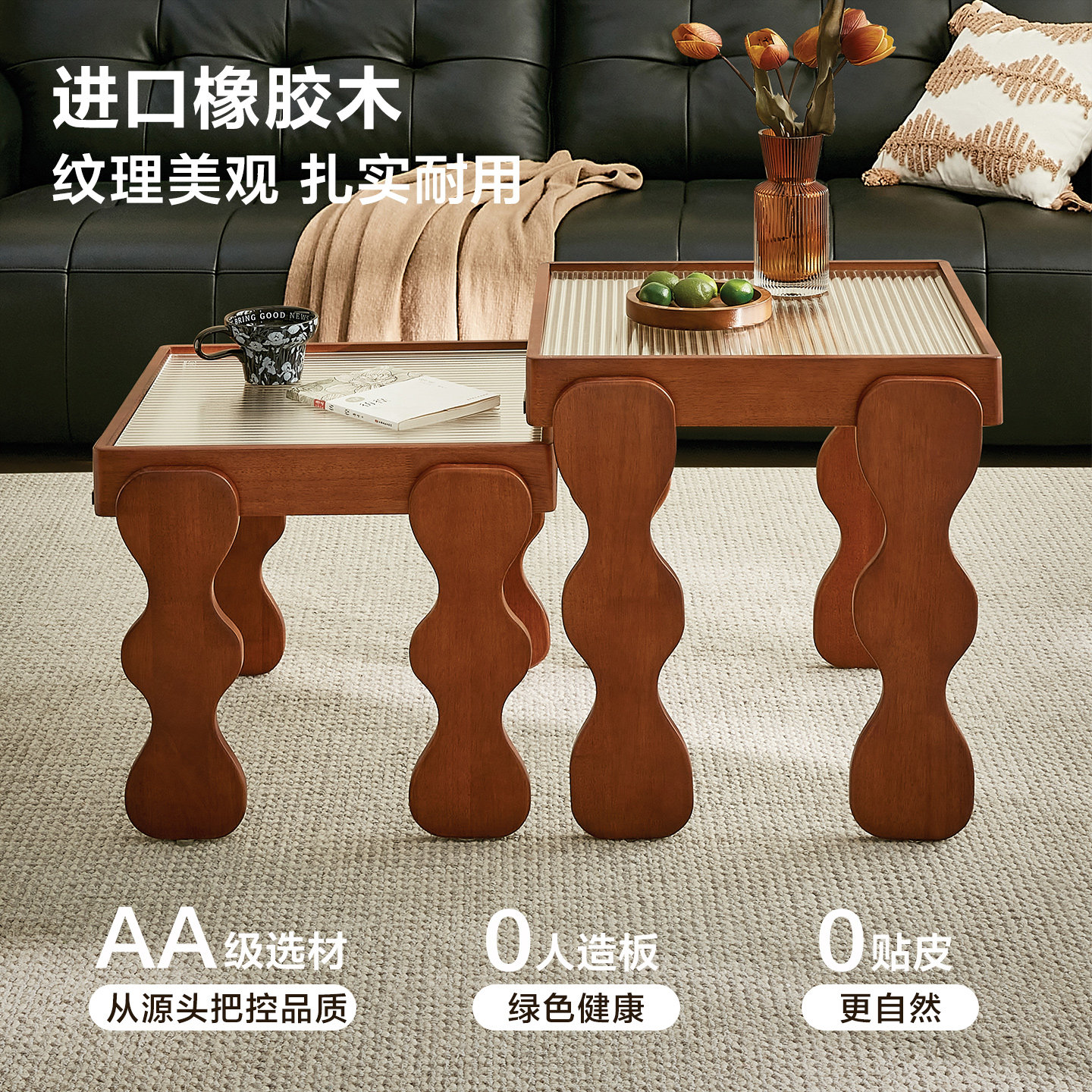 全友家居2025新款中古风玻璃实木茶几客厅家用橡胶木沙发边几组合