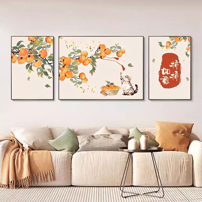 5d新中式钻石画卧室满钻新款手工点十字绣钻石绣2025客厅柿柿如意