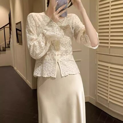 法式蕾丝打底衫女内搭独特漂亮小衫2025新款秋冬气质镂空罩衫上衣