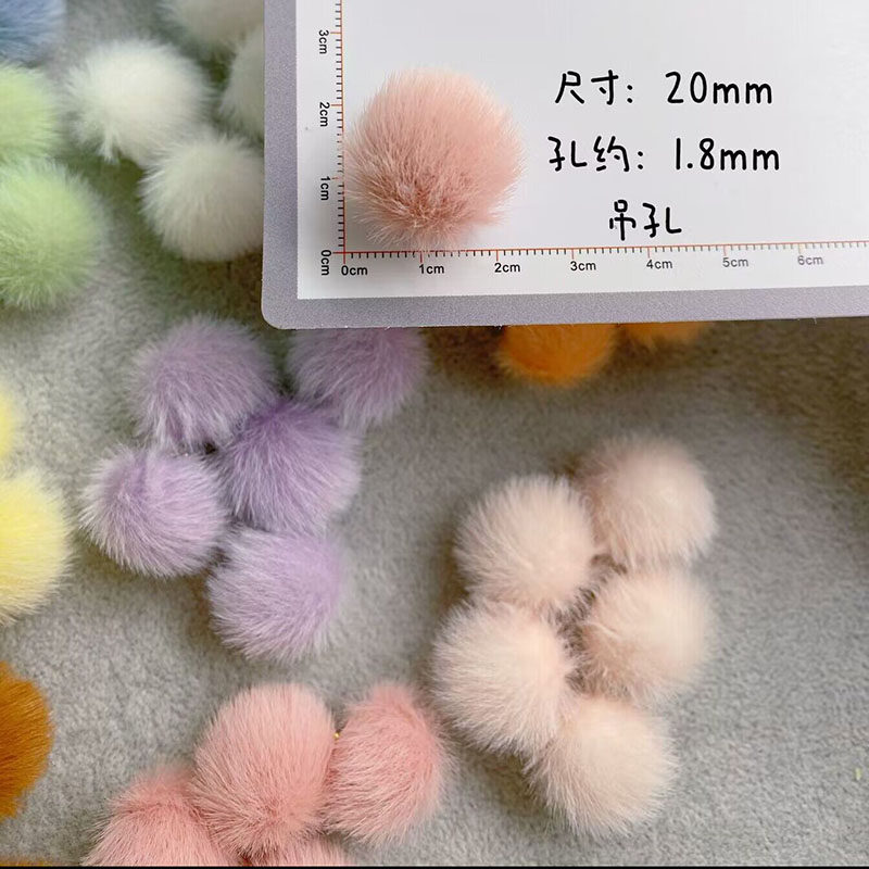 2cm长毛仿水貂毛球吊坠红色挂球挂饰手工diy手机链车挂圈饰品配件
