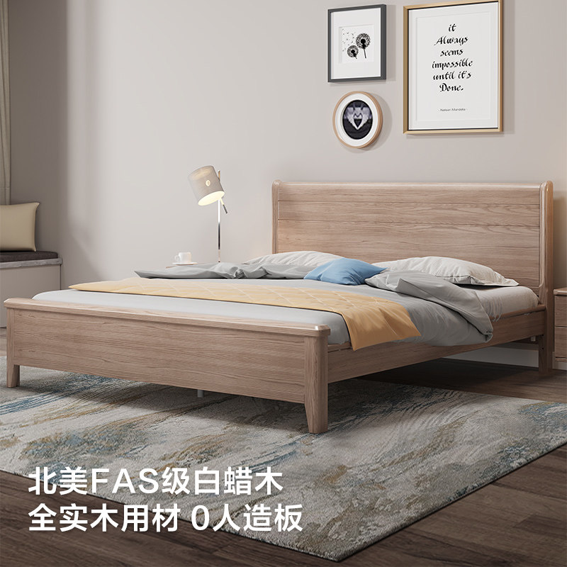 一林半舍1.8米双人全实木榫卯床侘寂风床1.5米主卧室白蜡木实木床