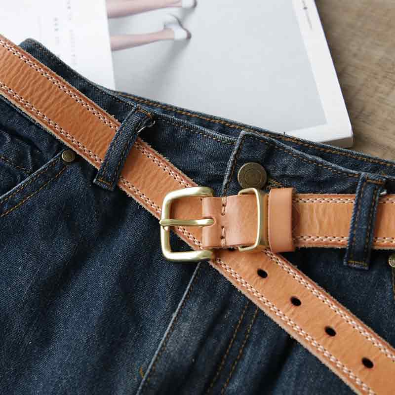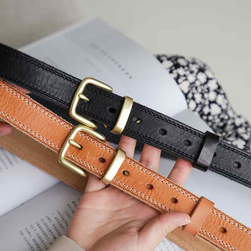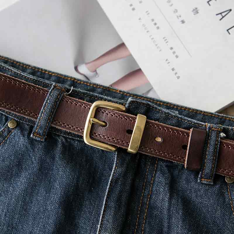 真皮女士腰带头层植鞣牛皮针扣复古小众纯铜扣头软皮简约百搭裤带
