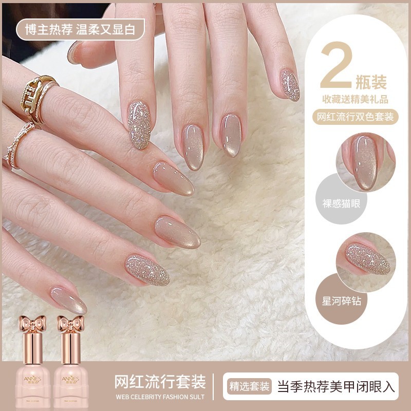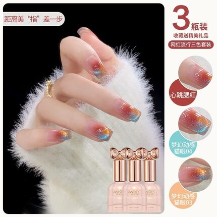 恩妮诗春夏冰透腮红动感碎钻晶石猫眼指甲油胶2025年新款美甲套装