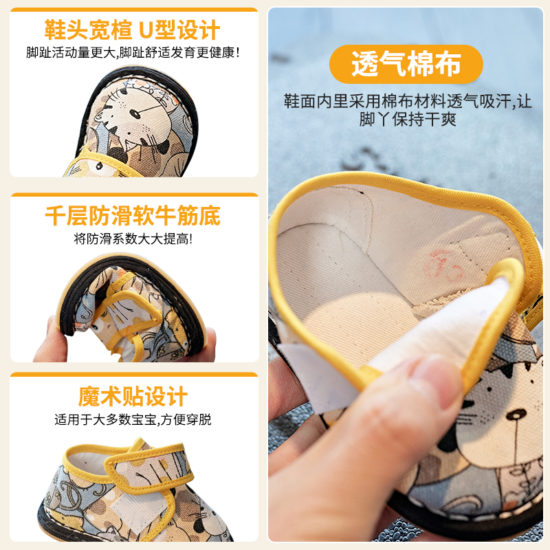儿童手工千层底布鞋1-4岁2男女宝宝透气老北京鞋子软底单鞋春秋季