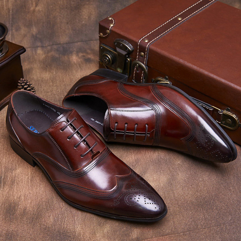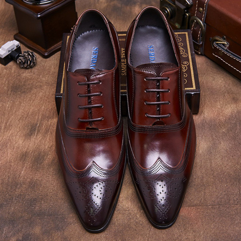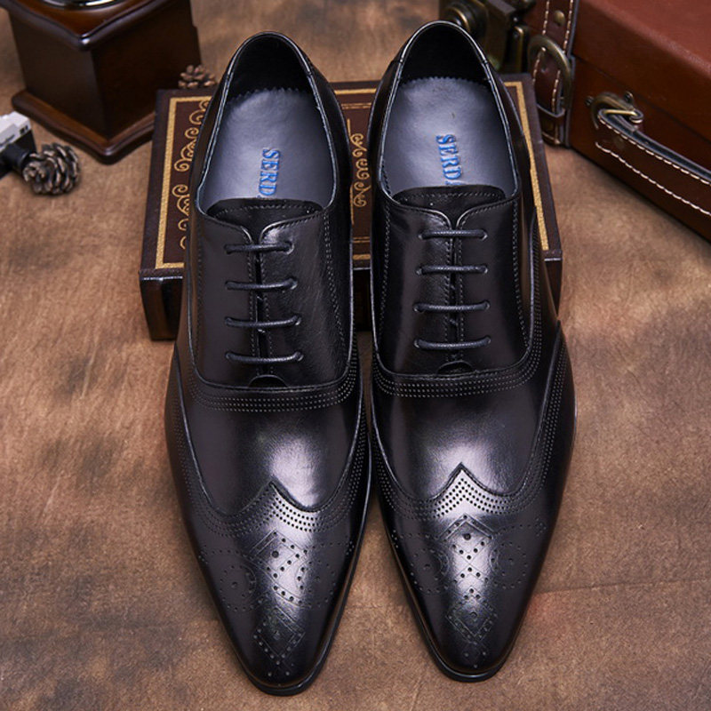 布洛克雕花系带商务风尖头皮鞋